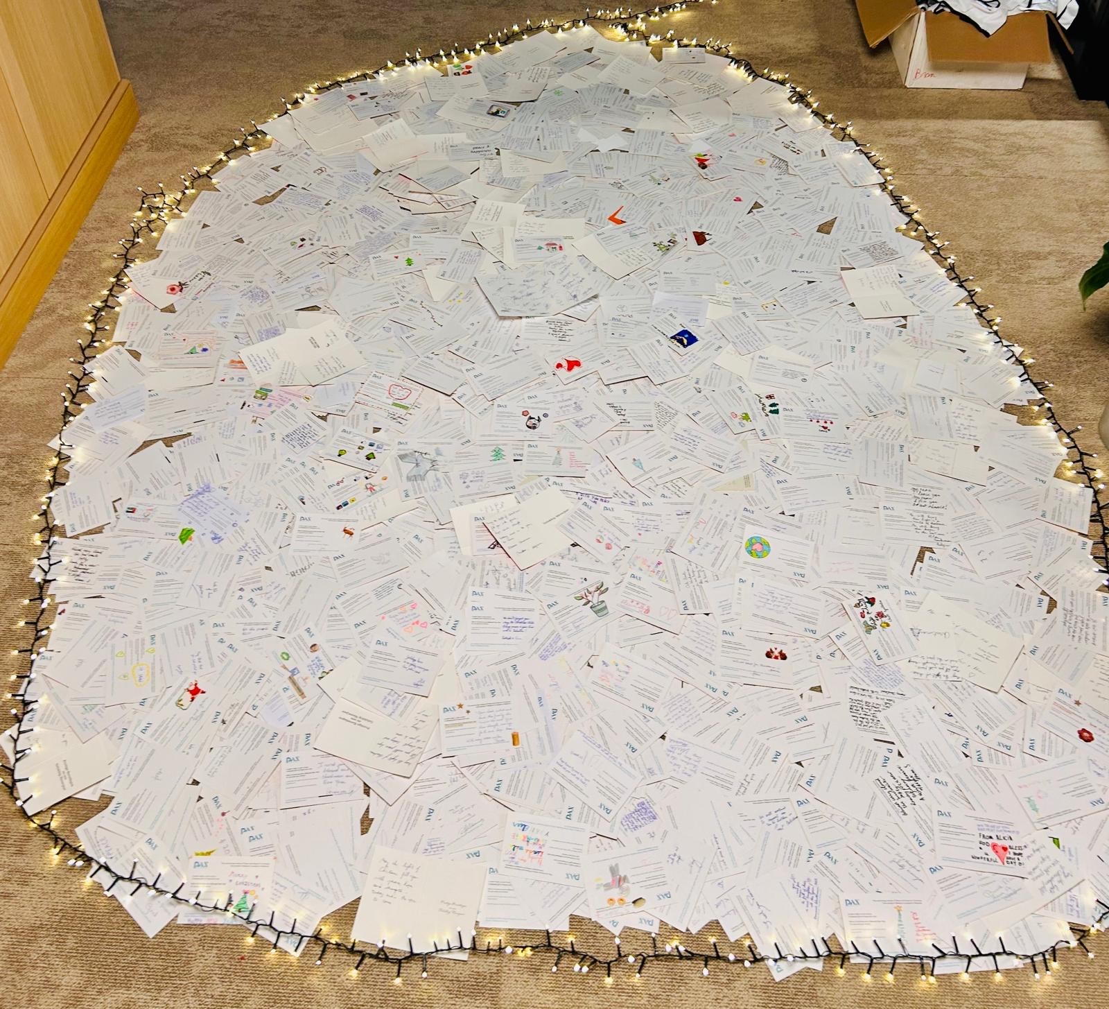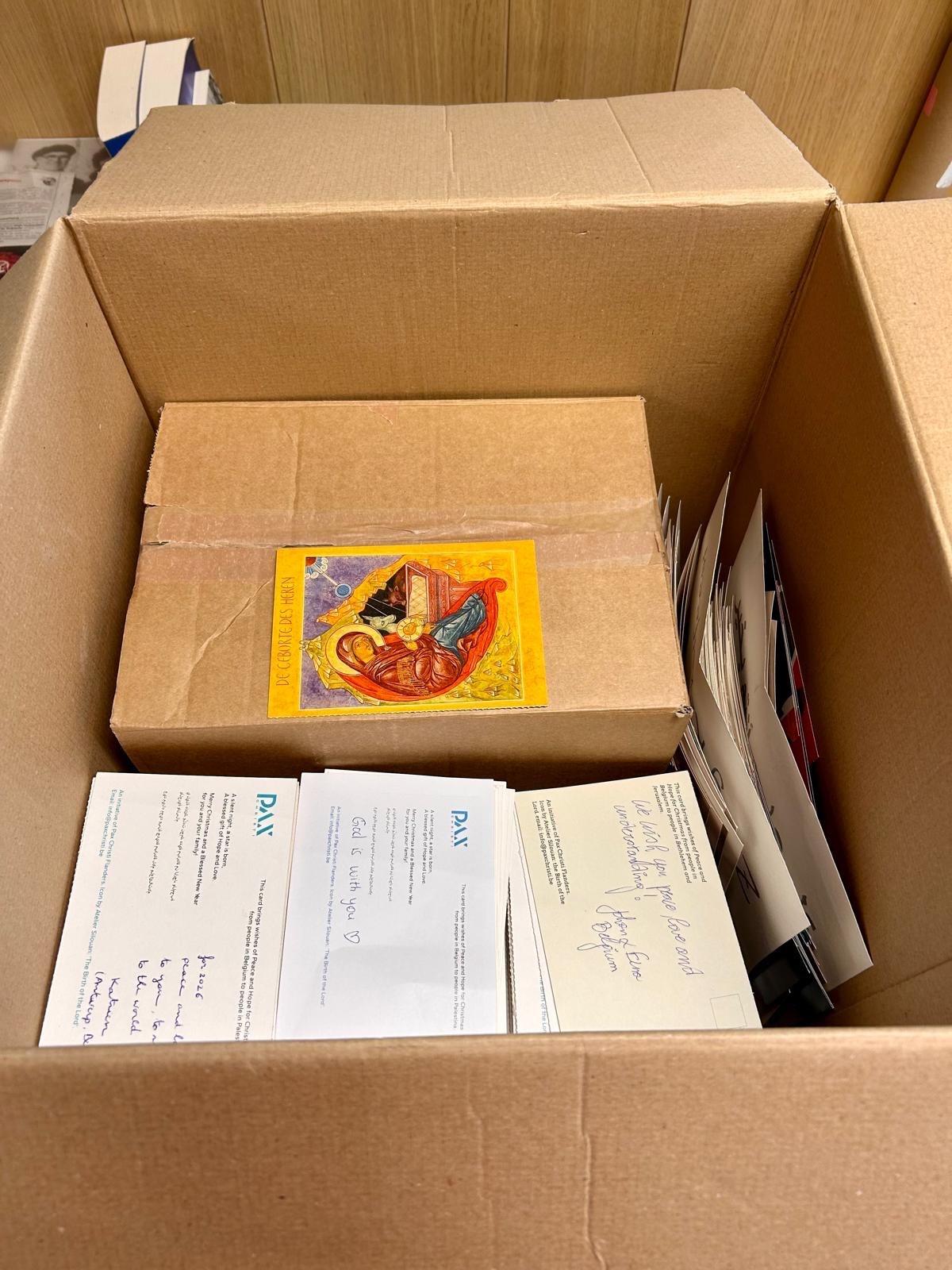 Nu zijn de door vele kinderen en volwassenen geschreven kaartjes onderweg naar Bethlehem en Jeruzalem. Vlak voor Oudjaar haalde de koerierdienst het pakket met meer dan 2.300 kaartjes op.