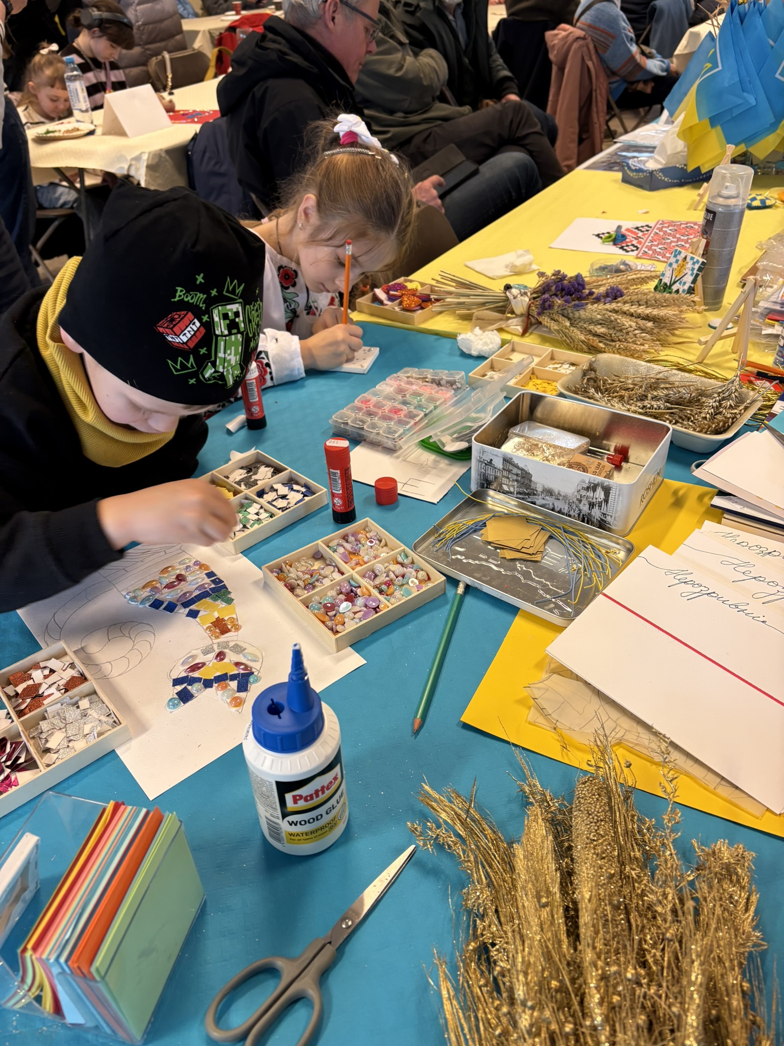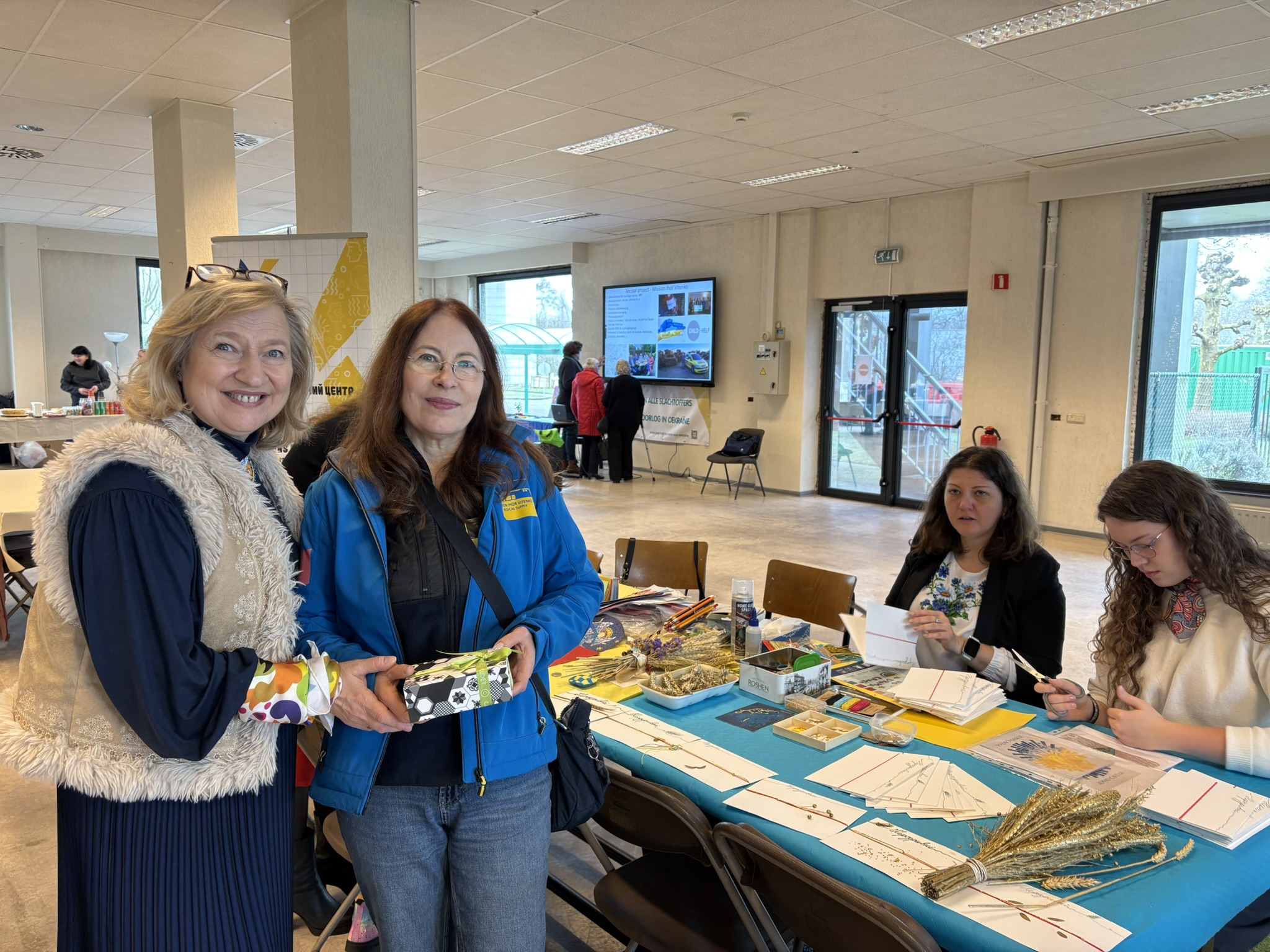 De hele dag was een realisatie van vele organisaties: dank aan BelUkrA-Onderwijs voor de geweldige locatie, dank aan alle verenigingen die culinaire lekkernijen aanboden, maar ook handgemaakte werken, dank aan de jongeren die de schilderijen maakten, en aan de vrijwilligers die alles mee hebben opgebouwd en opgeruimd.