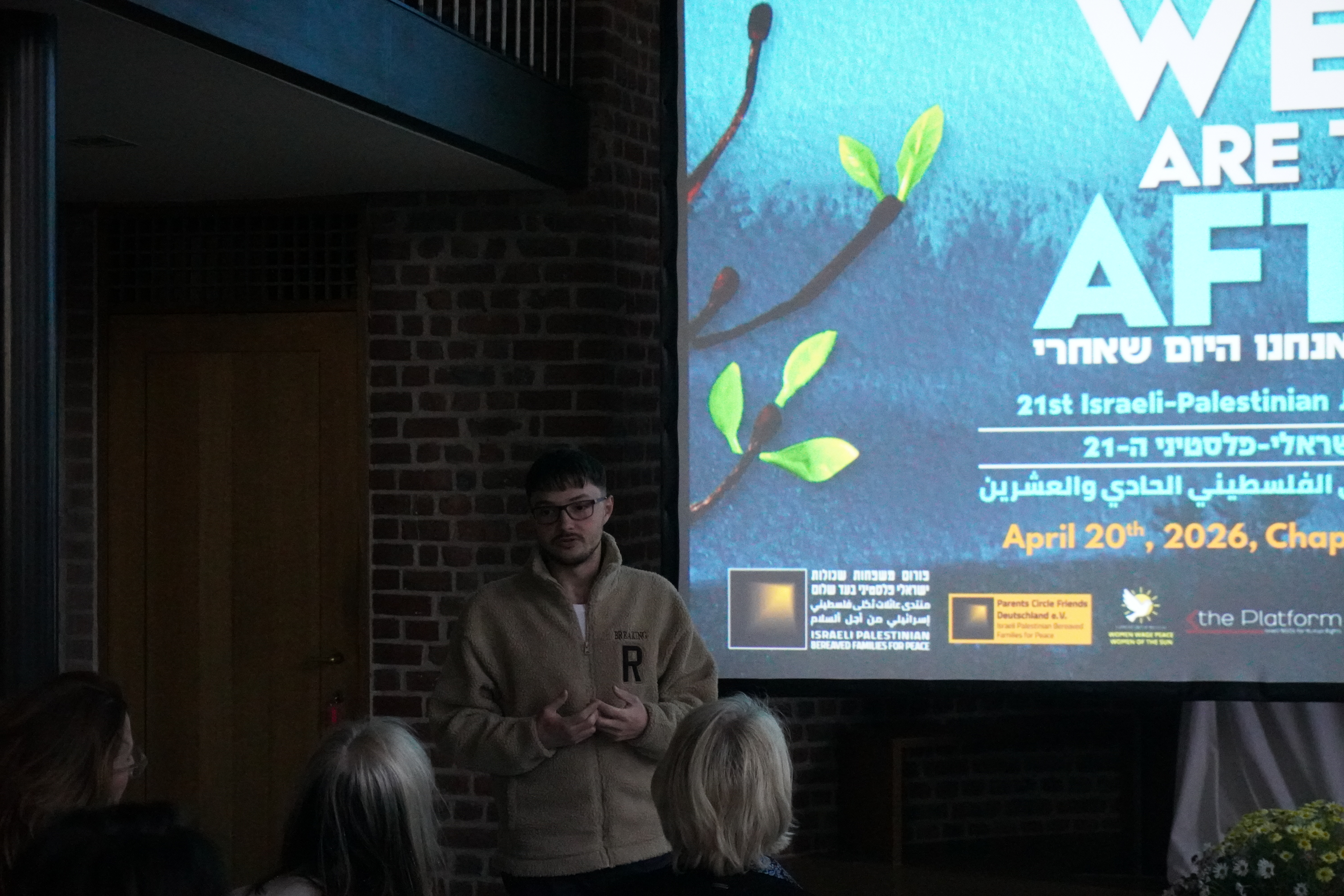 De opkomst was groot: op verschillende plaatsen in Israël en Palestina kwamen mensen samen om de ceremonie te volgen. Ook wereldwijd werd meegekeken, met meer dan 30 gezamenlijke vertoningen. In België volgden we samen de ceremonie in de Chapel for Europe in Brussel.